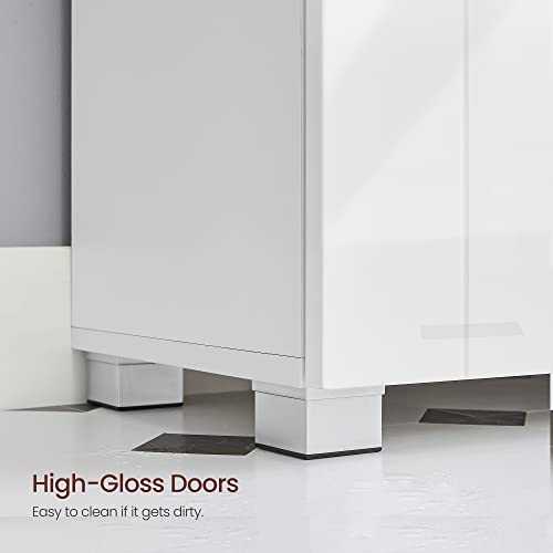 VASAGLE Armadietto da Bagno, Ante e Piano Superiore Lucidi, Mobiletto Multiuso, 2 Ripiani Regolabili, Mobile per Bagno Cucina Camera da Letto, 60 x 30 x 82 cm, Bianco BBK144W01