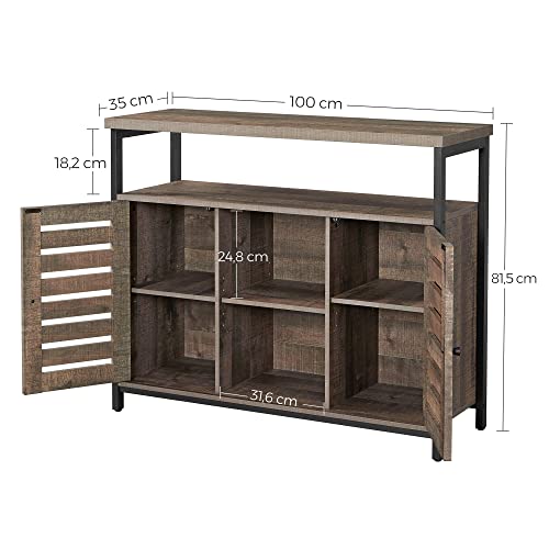 VASAGLE Armadio da Pavimento, Armadio da Cucina con Credenza e Ripiani, Ante a Persiana, per Sala da Pranzo, Soggiorno, Salotto, Camera da Letto, Marrone Freddo Anticato e Nero LSC079B13