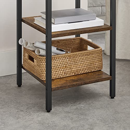 VASAGLE Comodino, Tavolino Alto, Mobiletto per Camera da Letto, Scaffale con 1 Scomparto e 2 Ripiani, Salvaspazio, Stile Industriale, 35 x 35 x 70 cm, Marrone Vintage e Nero LET601B01