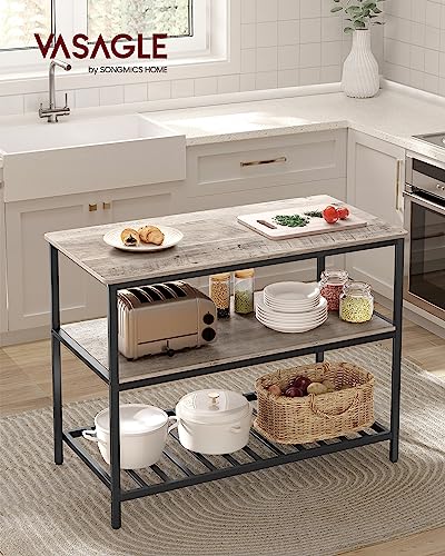 VASAGLE Isola da Cucina con Ampio Piano di Lavoro, Scaffale a 3 Livelli, Struttura in Acciaio, 60 x 120 x 90 cm, Stile Industriale, Facile da Montare, Greige e Nero KKI001B02