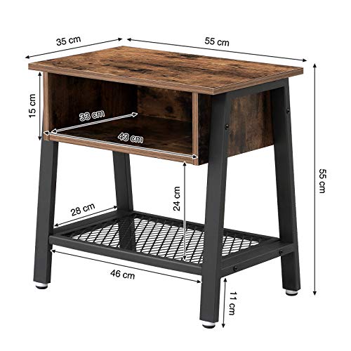 VASAGLE LET91X - Comodino vintage, stabile, con ripiano a griglia e scomparto aperto, grande capienza, per camera da letto, soggiorno e ufficio, telaio in ferro, pannello in truciolato di legno (spessore: 15 mm), 55 x 55 x 35 cm (L x A x P)