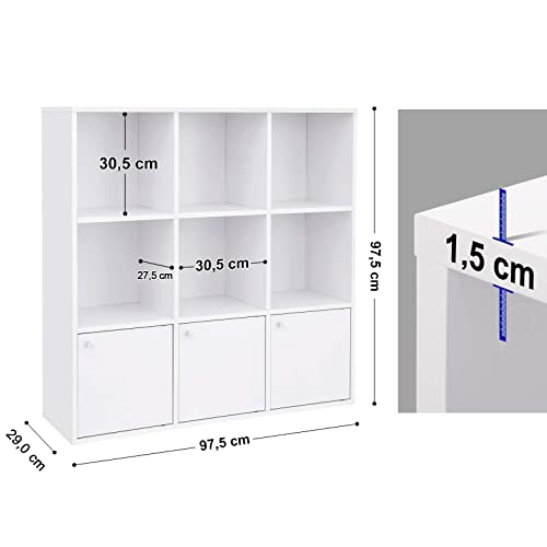 Dura per anni: Il nostro scaffale a cubi misura 97,5 x 29 x 97,5 cm. E' realizzato con truciolato. Ogni cubo ha una capacità di 15 kg, mentre il ripiano superiore ha una capacità di 50 kg D'ora in poi, tutti i tuoi articoli saranno supportati in modo saldo e affidabile