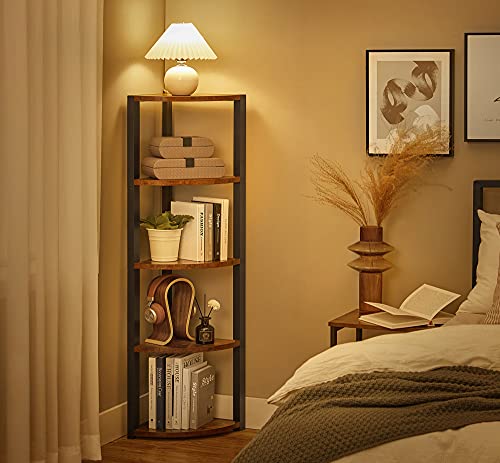 VASAGLE Mensola Angolare a 5 Ripiani, Scaffale ad Angolo, Scaffale Portaoggetti Multiuso, Portavasi, per Soggiorno Camera da Letto Studio, Stile Industriale, Marrone Vintage e Nero LLS801B01