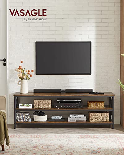 VASAGLE Mobile TV, Supporto TV, Tavolo Console, per TV fino a 65 pollici, con ripiani, telaio in acciaio a X, stile industriale country, 147 x 40 x 50 cm, marrone rustico e nero LTV100B01