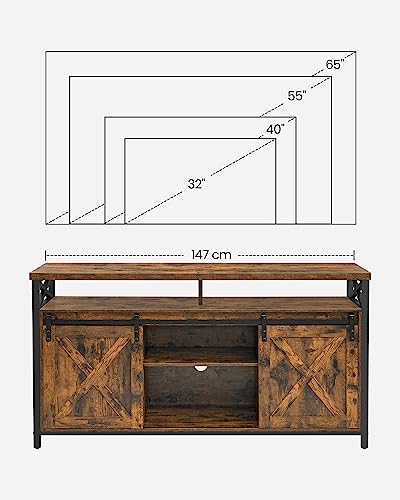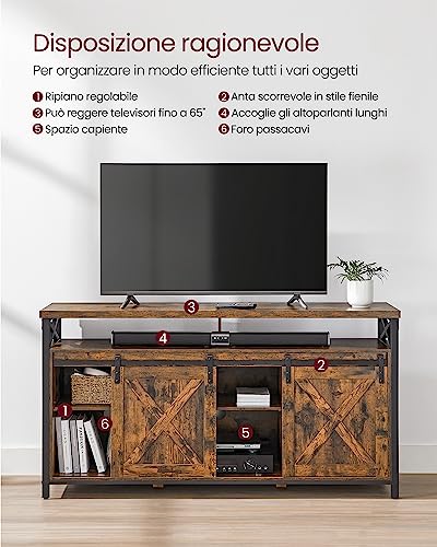 VASAGLE Mobile TV per Televisore fino a 65 Pollici, Tavolino Porta TV con Ripiani Regolabili, Ante Stile Fienile, Vintage, Struttura in Metallo, Marrone Vintage e Nero LTV071B01V1