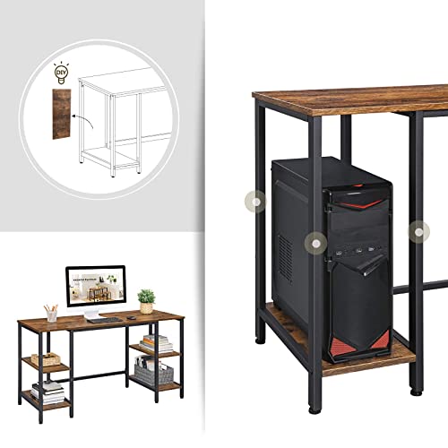 VASAGLE Scrivania per Computer, Scrittoio di 137 cm con 4 Ripiani, Ampio Piano, per Studio, Stile Industriale, Marrone Vintage e Nero LWD54X