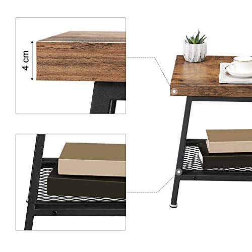 VASAGLE Tavolino Vintage con Ripiano a Rete Metallica, Comodino, Tavolino Lato Divano, Stile Industriale, Struttura in Ferro, per Soggiorno, Camera da Letto, Cucina, Balcone LET42X
