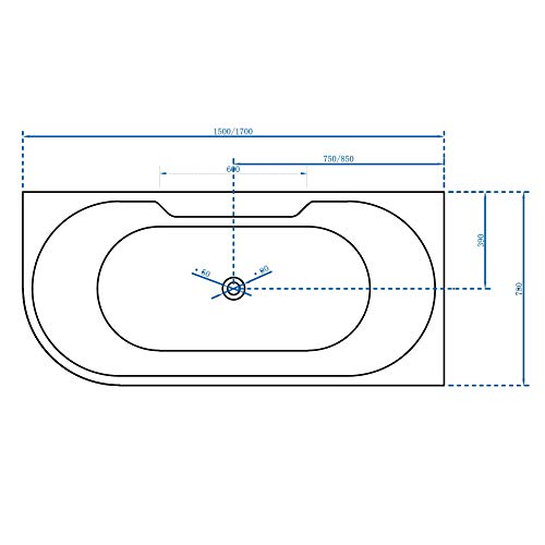 Vasca da bagno freestanding in acrilico sanitario NOVA CORNER PLUS - 170 x 78 x 60 cm