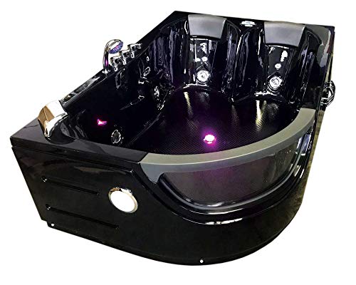 Regolatore di pressione acqua Aspirazione acqua Circolazione acqua n 1 luci grandi al led n 2 altoparlanti n 1 appendi asciugamani n 1 luci al led Rubinetteria inclusa Vasca in acrilico sanitario di alta qualità di colore nero Peso: 100 kg Struttura in acciaio Cromoterapia Rubinetto a cascata modello americano incluso