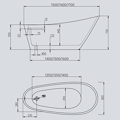 Vasca Da Bagno Free Standing 005 Acrilico Bianco Lucido Ovale
