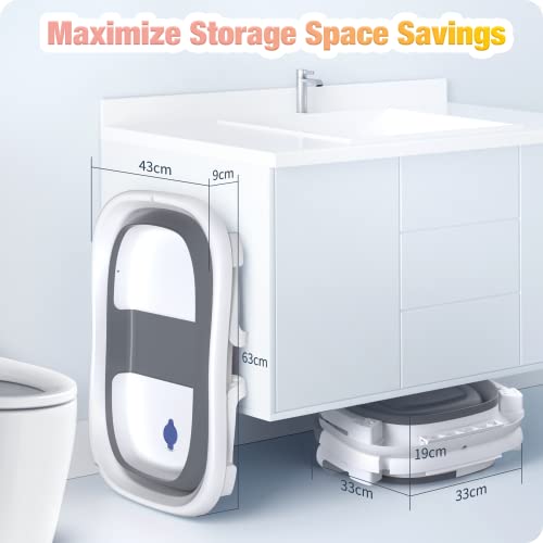 Rabb 1st vasca per bambini pieghevole, elementi essenziali per il bagnetto, vasca per bambini portatile multiuso con tappetino antiscivolo e foro di scarico. (nessun termometro)