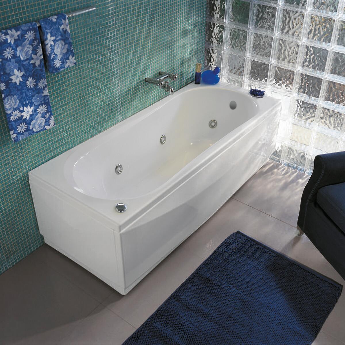 PANNELLO FRONTALE + LATERALE SENZA COLONNA DI SCARICO. Vasca idromassaggio 6 jets, reversibile, senza colonna di scarico. Dotata di pannello frontale e 1 laterale, il secondo pannello laterale disponibile su richiesta. Vasca di buona qualità ad un prezzo estremamente vantaggioso