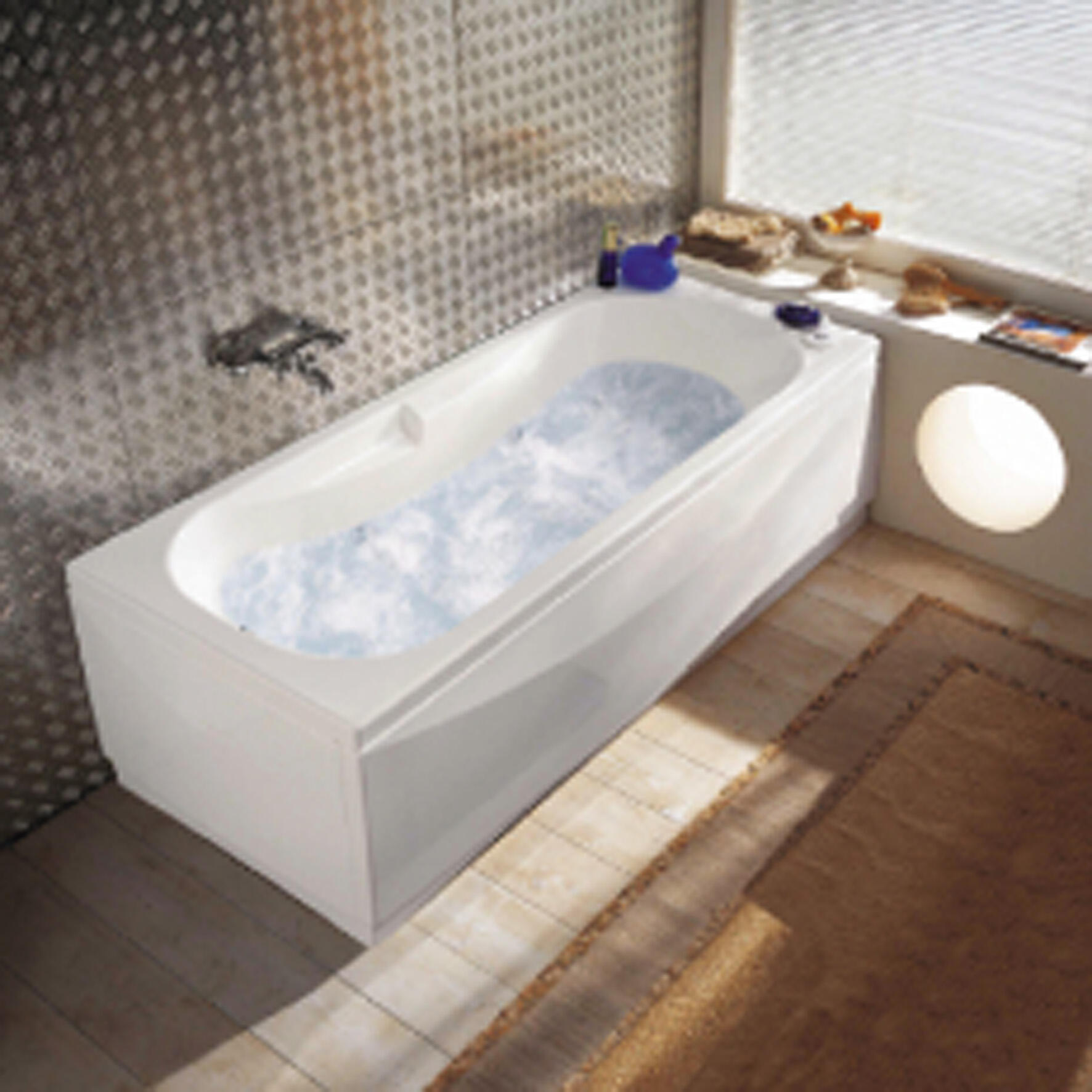 In acrilico, installazione a parete. Idromassaggio whirpool, getti regolabili, due pannelli