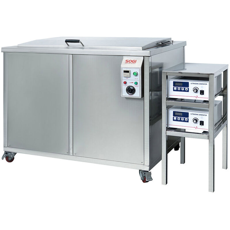 La vasca di lavaggio a ultrasuoni SOGI VL-U3600R è realizzata interamente in acciaio inox così da garantirne la durata stessa contro la corrosione di eventuali oli, impurità o gli stessi liquidi sgrassanti utilizzati durante il lavaggio dei pezzi. É inoltre dotata di apposita resistenza di riscaldamento per aumentare ka temperatura del liquido di lavaggio sino ad 80° Celsius così da unire il potere pulente degli ultrasuoni all'effetto emoliente del fluido riscaldato. La ventola di raffreddamento del sistema di alimentazione garantisce un'apposita aereazione e rafffreddamento di tutto il sistema di alimentazione. Il materiale con cui è realizzata è certificato AISI304, per cui l'articolo è idoneo al lavaggio di componenti ad uso alimentare o che vanno a contatto con il cibo. Il suo utilizzo è il più versatile possibile e grazie alle sue ampie dimensioni ed elevate prestazioni consente il lavaggio e la pulizia accurata di componenti di grandi dimensioni utilizzata per la pulizia