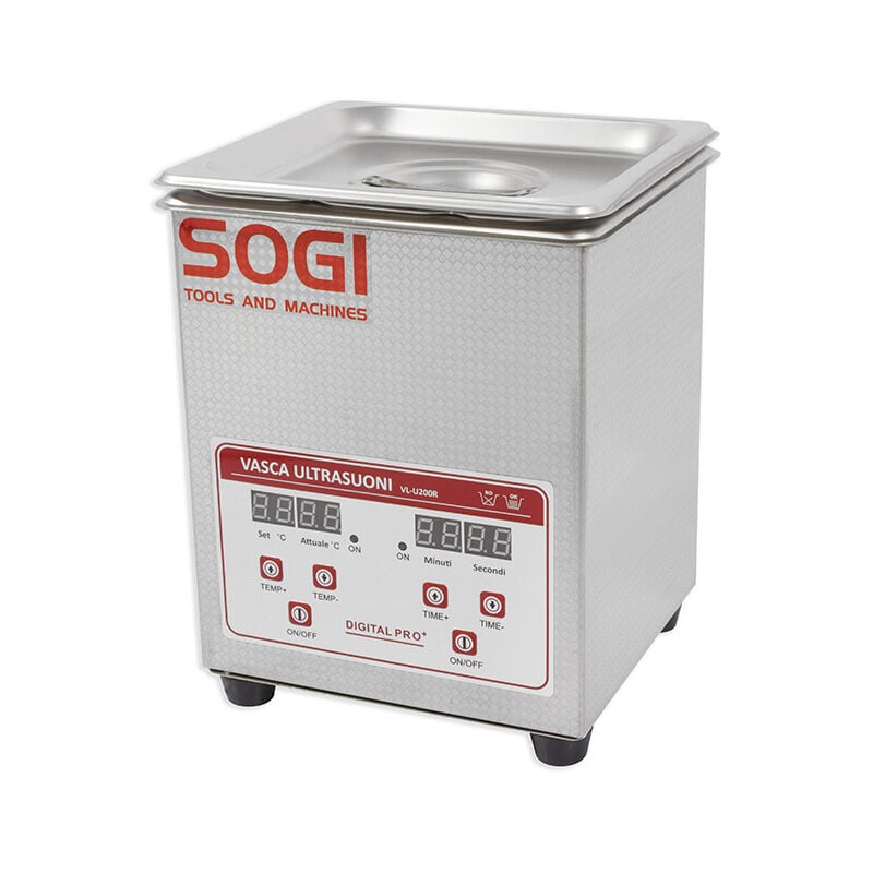 La vasca di lavaggio a ultrasuoni SOGI VL-U200R è realizzata interamente in acciao inox per contrastare la corrosione dei solventi o liquidi sgrassanti utilizzati durante il lavaggio dei pezzi. É inoltre dotata di riscaldamento con un massimo di 80° Celsius. Predisposta di ventola di raffreddamneto per il sistema di alimentazione. Il materiale con cui è realizzata la capacità di contenimento della vasca in esame è certificato AISI304, per cui l'articolo è idoneo al lavaggio di componenti ad uso alimentare o che vanno a contatto con il cibo. Viene utilizzata per la pulizia di componenti meccanici, testate, valvole, iniettori, supporti, schede elettroniche, componenti elettronici, cuscinetti, utensili. Di facile utilizzo grazie al pannello di comandi intuitivo LCD e tasti con potenziometro per regolarne la potenza degli attuatori ad ultrasuoni. La lavatrice non è solo stabile, ma anche facile da pulire . Si tratta di un investimento di lunga durata, il pulitore rimane sempre igienico