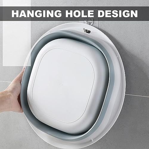 Vasca pieghevole, 2 pezzi, cesto per la biancheria, pieghevole, collapsible Tub, multifunzione, portatile, salvaspazio, in plastica (grigio + blu)