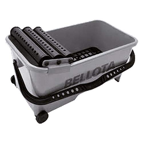 Vasca resistente in plastica antiurto. Completa di due ruote più due piedi. Tre rulli in plastica su boccole antiusura e griglia in plastica. Manico superiore.
