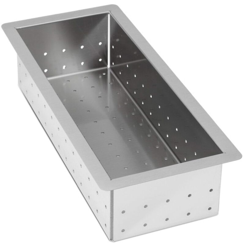 METAL TRAY L è una vaschetta multifunzione in acciaio inox - da usare come scolaposate o verdura, porta spugne o cover estetica sia nel lavello che nel top della cucina - compatibile con i lavelli della collezione Lumium Sopratop di Evhoc o con lavelli di altri marchi delle stesse dimensioni. Metal Tray L misura 43,5x20 cm ed è in acciaio inox forata, altamente resistente al calore e al freddo e molto facile da pulire.
