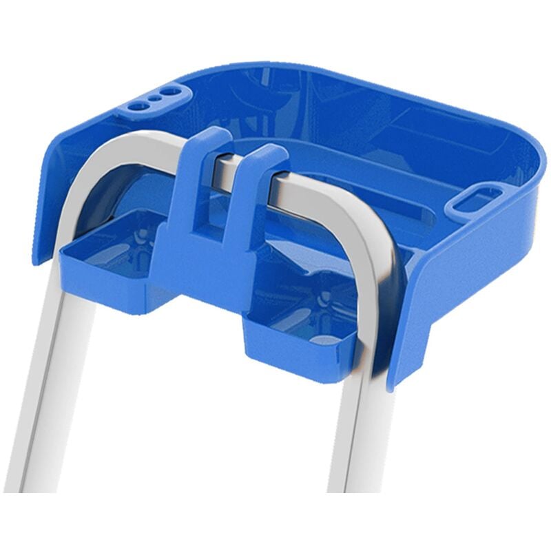 Vaschetta portaoggetti in plastica, applicabile su qualsiasi tipo di scala, robusta e resistente. Portata: 5kg, made in Itali.