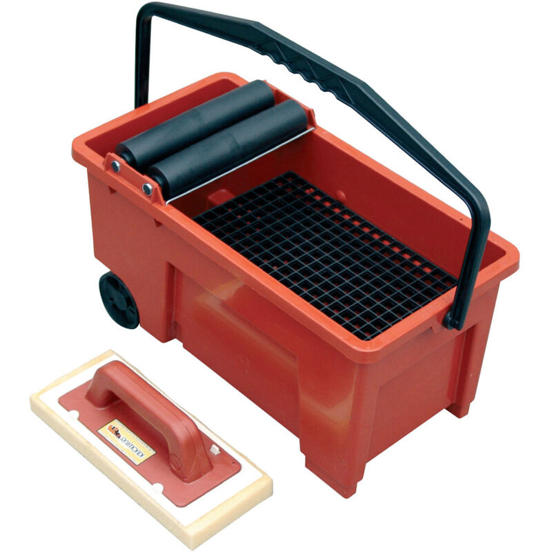 VASCHETTA SECCHIO LAVAGGIO PROFESSIONALE PER PULIZIA PIASTRELLE CASA DA LT.25 Vasca in plastica antiurto, su due ruote più due piedi. Due rulli in plastica su boccole antiusura e griglia PVC. LT.25