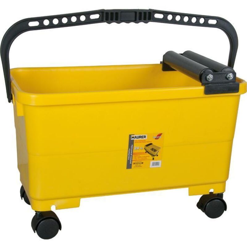 Secchio lavabile da 24 litri - Con 2 rulli pieni e fissi di lavaggio corrugati - Corredato di rotelle di trasporto piroettanti e griglia in PVC in dotazione - Corpo in ABS 1,9 kg. - Manico leggero in PVC Confezione: 1 PZ Misura 500x 270 mm.