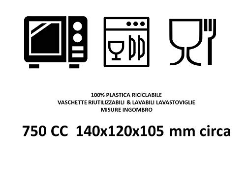 50 Vaschette Contenitori Riutilizzabili e Lavabili in lavastoviglie Uso Cibo caldo o freddo e MICROONDE (congelamento a -20 gradi) (750cc)