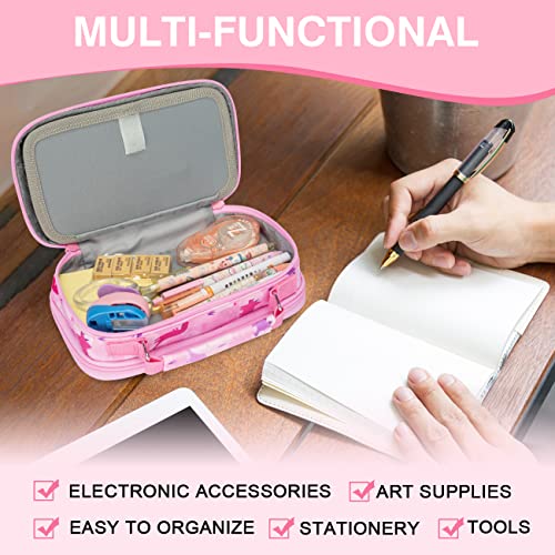 VASCHY Astuccio, Astuccio Bambina Astuccio Scuola Media Astuccio Grande Astuccio 3 Scomparti Astuccio Portapenne per Università con Cerniera Compartimenti Astuccio Matite Ufficio/Opera/Dinosauro Rosa