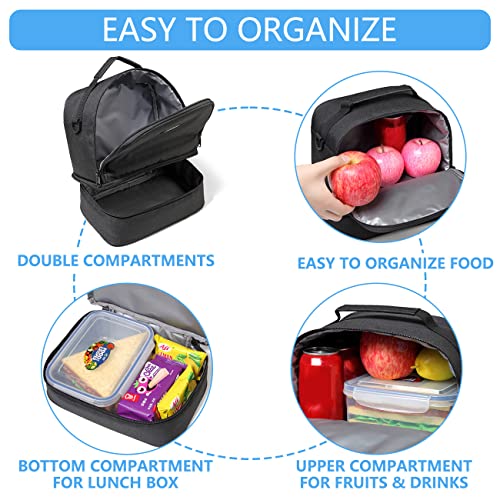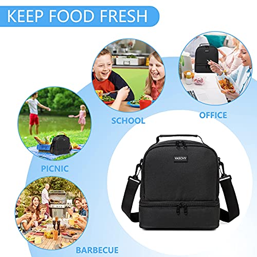 VASCHY Borsa porta Pranzo, Borsa Termica porta Pranzo Borsa Frigo Grande Borsa Pranzo con Tracolla Borse porta Alimenti per Adulti/Bambino Borse da Picnic Scuola Lavoro Nero