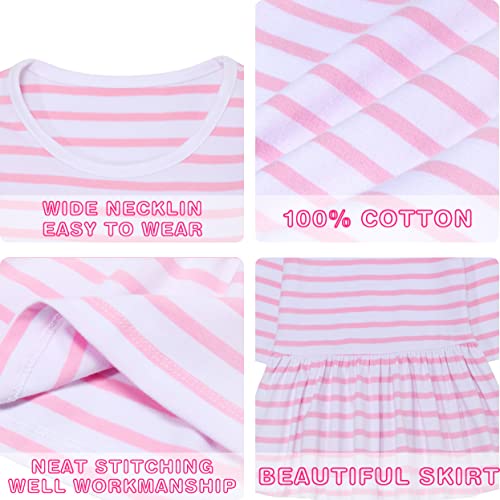 VASCHY Vestito Bambina,Vestito da Ragazza Dinosauro Vestito Manica Lunga Striscia Maglietta Casual Cotone Abiti Cartoon Animale Sciolto per Bambina 1-7 Anni Bianco