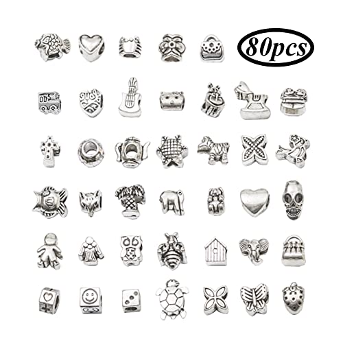 Vasemele Distanziatori 80 Pezzi Perline Tibetane in Lega Perline Distanziatori Tibetano Argento Tibetano Perline Distanziali Perline in Lega di Stile Tibetano 40 Stili