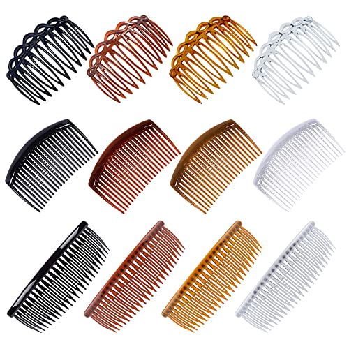Vasemele Pettinini Fermacapelli 12 Pezzi Pettine per Capelli Laterali in Plastica Pettine Francese Fermagli per Capelli con 11/23/24 Denti, Capelli Lisci Pettini per Capelli per Donne, 4 Colori
