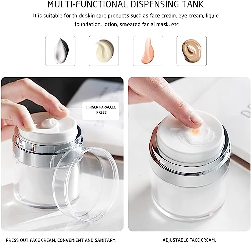 【Ampiamente Usato】La bottiglia ricaricabile può contenere fondazione, crema, lozione, idratante o prodotti per la cura della pelle fai da te Tappo sottovuoto: barattolo della pompa airless è pulito e non sprecò, spremere e verso il basso per sollevare la crema, con poco residuo sulla parete della bottiglia e nessun spreco di cosmetici.