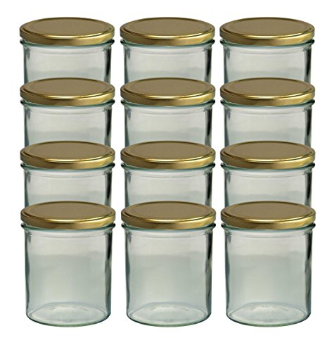 20 vasetti in vetro per conserve, 350 ml, To 82, colore: Oro