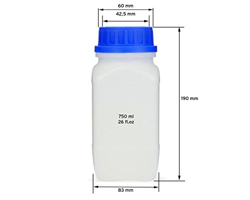 10 X Vasetto di bottiglie con tappo a vite, sostanze chimiche, Laboratorio Bottiglia con Coperchio come contenitore per cucina laboratorio, o hobby, trasparente, 10x 750 ml