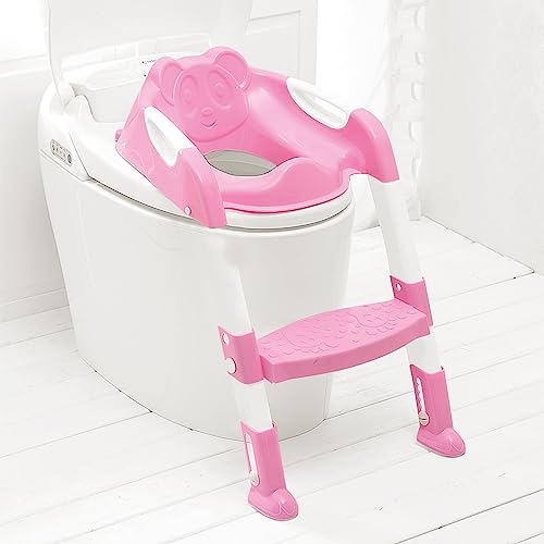 Vasino sedile Teddie con scaletta per WC, per bambini, rosa, di SQ Professional