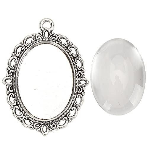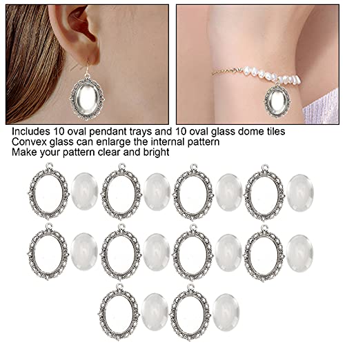10 Set di Vassoi con Ciondolo Ovale con Ciondolo in Vetro, Set di Vassoi con Ciondolo Ovale in Vetro Cabochon, Piastrelle a Cupola Trasparente, Ciondolo Artigianale Fai da Te, Gioiello Artigianale