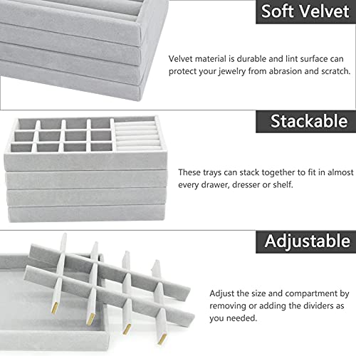 Set di 4 vassoi per gioielli in velluto, impilabili per cassetti, orecchini, collane, bracciali, anelli (grigio)
