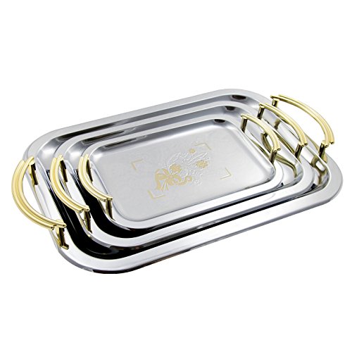 Set di vassoi da portata per frutta in acciaio INOX | Set di 3 diverse dimensioni con vassoio da dessert, piatto e piatti da portata. 1