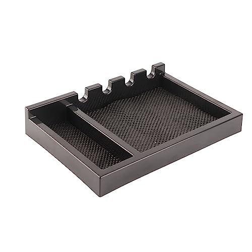 AMPIA AREA: la scatola del vassoio del barbiere è grande e offre un'area piacevole, morbida e resistente per tagliaunghie, spazzole, forbici o caffettiere. mantieni organizzato il piano di lavoro della tua postazione di lavoro, questo vassoio per clipper progettato per organizzare le forniture del barbiere
