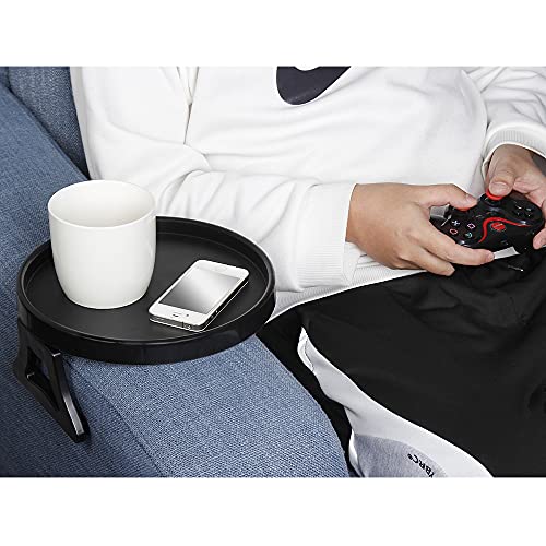 Vassoio con clip per bracciolo del divano, per appoggiare telecomando/bibite/joystick (nero)