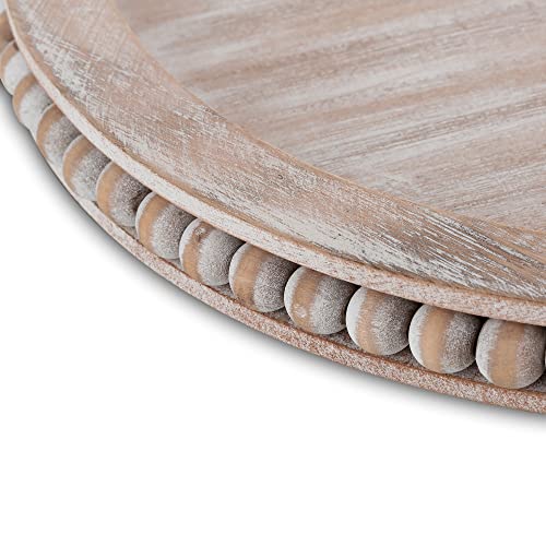 Vassoio Candele in Legno con Perline - Piatto Candele per Pilastro Ingresso 30cm Vassoio Rotondo Vassoio Rustico Vassoio Decorativo in Difficoltà Vassoio Caffè Bianco per Centrochi Decorazioni Casa