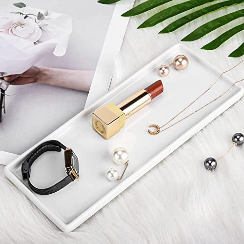 Vassoio in Ceramica, 2 Vassoio da Bagno in Ceramica Piccolo Rettangolare, Vassoio in Porcellana Bianca in Ceramica, Vassoi in Porcellana Supporto in Ceramica per Candele Sapone Gioielli Portachiavi