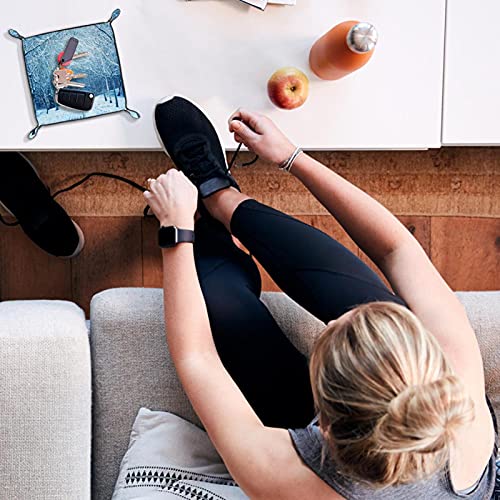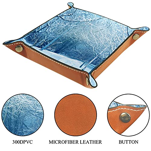 Vassoio da gioco pieghevole con dadi rotanti Vassoi per gioielli quadrati in pelle e orologio, chiave, moneta, scatola di caramelle Albero coperto di neve