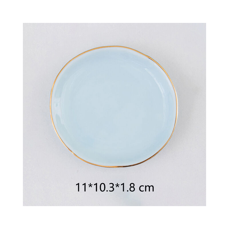 Vassoio per gioielli in ceramica bianca piatto di forma ovale con supporto per anello decorativo con bordo dorato,Light Blue