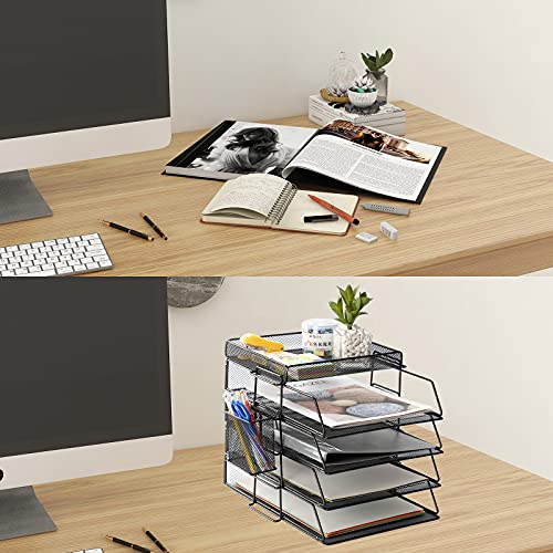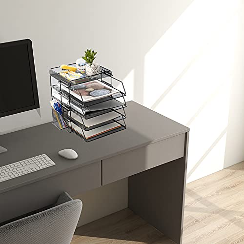 【Dimensioni e materiale del vassoio delle lettere】 13" x 25,4 cm x 6,3 cm. Ogni vassoio di carta è dotato di 4 vassoi di facile accesso. Robusta struttura in rete nera in acciaio. 1 piccolo vassoio piatto è comodo per riporre gli accessori da scrivania, e un organizer per penne viene utilizzato per riporre articoli di cancelleria da ufficio. Non sono necessari attrezzi. Molto facile da installare.