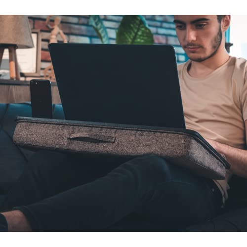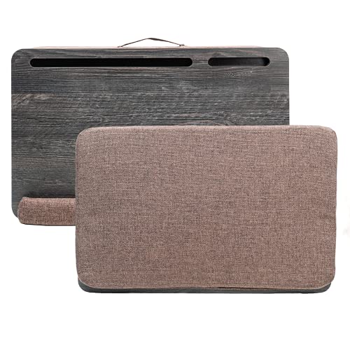 Vigo Wood Vassoio per laptop per letto, scrivania per laptop, supporto per laptop per letto, vassoio per laptop con cuscino, vassoio portatile per laptop per casa e ufficio, adatto per tablet e
