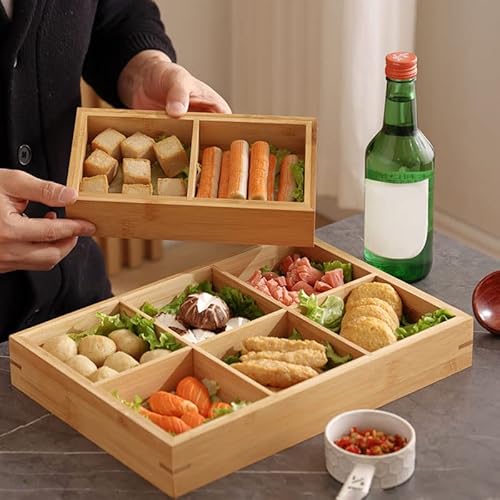 Vassoio in Legno Diviso, Vassoio da Portata Diviso Impugnatura Comoda per Piatto di Sushi (6 scomparti)