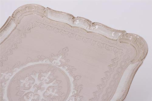Vassoio in legno stile trecentesco rettangolare, decoro fatto a mano (41 x 32 x 2 cm)