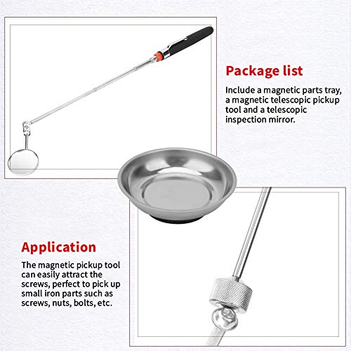 Vassoio magnetico 3Pcs - Vassoio per parti magnetiche/Strumento di raccolta telescopico/Specchio di ispezione, Vassoi magnetici Strumenti Supporto per vassoio per raccogliere viti Dadi Bulloni