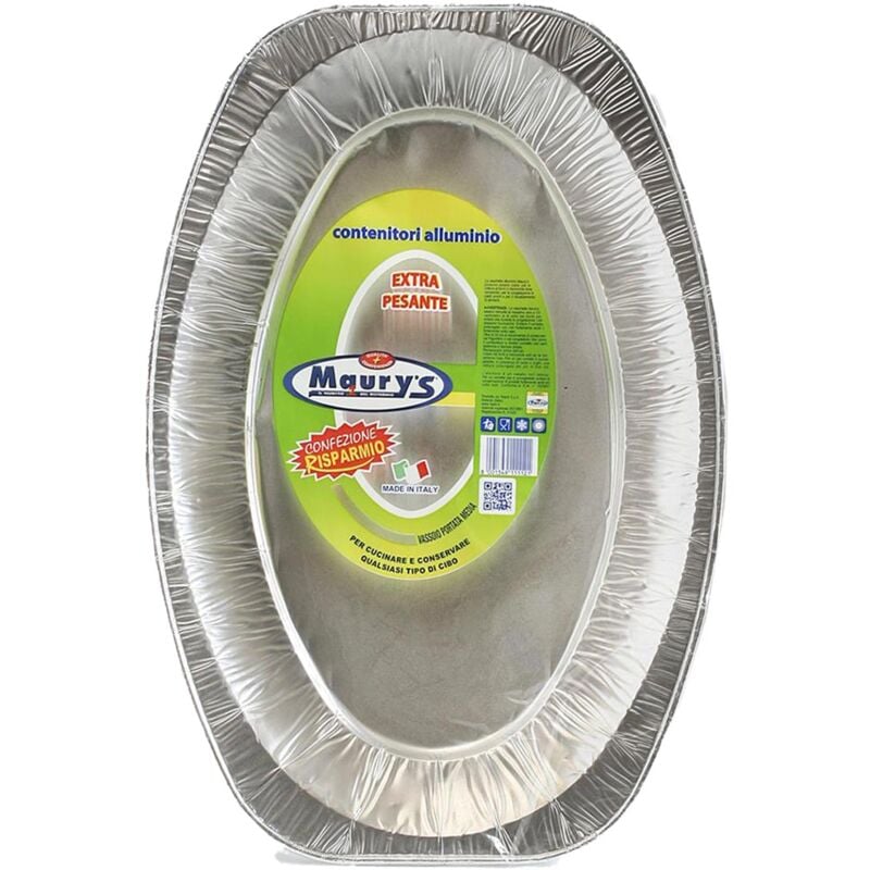 Vassoio usa e getta Materiale: alluminio Formato: ovale medio Adatto al contatto con gli alimenti Ideale per le cotture in forno Made in Italy Riciclabile Adatto alle basse temperature del frezeer Dimensioni del prodotto: 43 x 29 cm